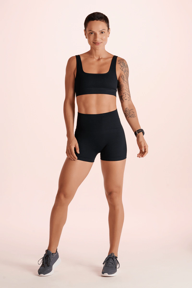Shorts sem costura canelado com cós alto e anatômico que modela a silhueta e proporciona conforto durante a atividade, enquanto a borda de silicone garante que ele não saia do lugar. Sua estrutura em pontos canelados garante uma vestibilidade ajustada e uma textura interessante ao produto. Uma peça moderna para compor looks esportivos, casuais e urbanos.